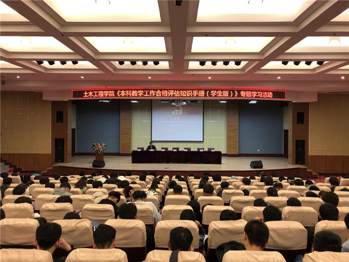 ——专题学习《本科教学工作合格评估知识手册(学生版)》。4月6日晚上,土木工程学院在学术报告厅开展《本科教学工作合格评估知识手册(学生版)》专题学习活动,该院学生600余人参加,学生党支部书记吕丁锁主讲。学习会上,吕丁锁老师带领大家学习了本科教学工作合格评估基本知识和beat365,并动员学生以实际行动积极投身到评估工作中去。要求学生党员、班干部模范带头,积极组织各班级学习评估知识,把评估知识的学习作为自己日常学习生活中的一部分,以良好的精神面貌迎接本科教学工作合格评估。