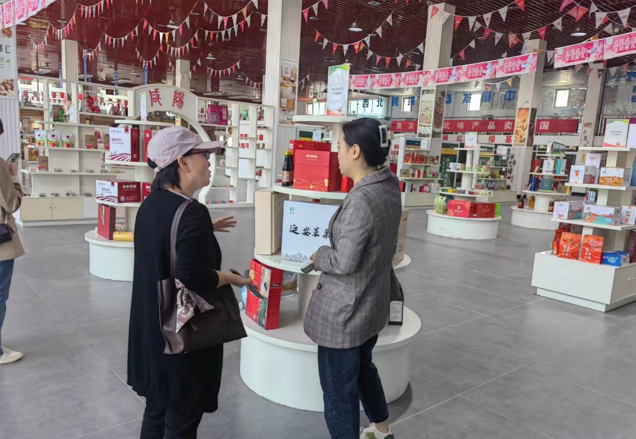 在园区工作人员带领下参观了园区的抖音电商直播基地、配送中心等厂区。了解武功县苏坊镇、游凤镇、长宁镇、小村镇、大庄镇等地的特色农产品线上营销情况。并前往长宁镇和“西北手工挂面第一村”孔雀村向农户了解当地特色产品醋和手工挂面的生产工艺及线上销售状况。