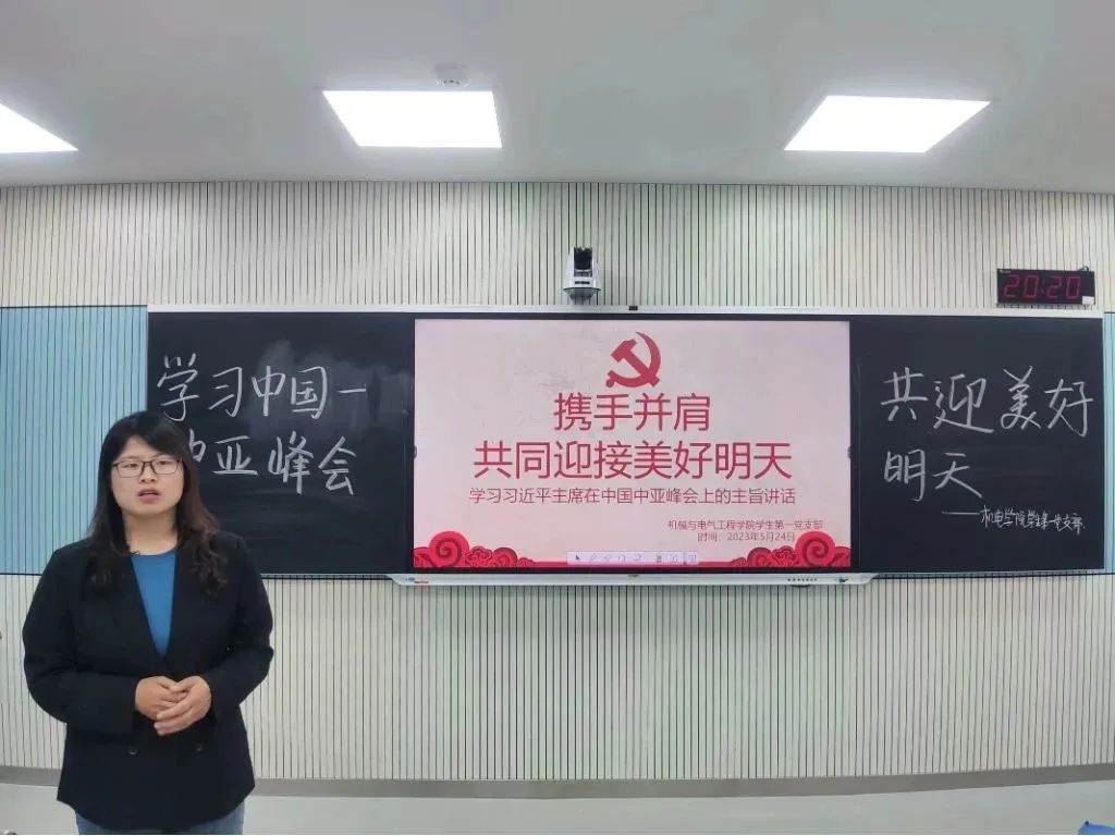 ——该院学生第一党支部开展“学习习近平在中国—中亚峰会上的主旨讲话精神”研讨会。为深入学习贯彻习近平总书记在中国—中亚峰会上的重要讲话精神,引导青年学生在学思践中坚定理想信念。5月24日,学院学生第一党支部开展“学习习近平在中国—中亚峰会上的主旨讲话精神”研讨会。会上,通过PPT形式带头学习了习近平总书记在中国—中亚峰会上的重要讲话精神。围绕世界需要一个什么样的中亚提出的“四点主张”,就建设中国—中亚命运共同体提出的“四个坚持”,着眼中国同中亚国家合作提出的“八点建议”展开学习。王新焕书记强调,习近平总书记的重要讲话,高屋建瓴、思想深邃、内涵丰富、语重心长。我们要把学习贯彻习近平总书记系列重要讲话精神、习近平新时代中国特色社会主义思想主题教育结合起来,自觉用新时代党的创新理论观察新形势、研究新情况、解决新问题,树立正确的价值观、人生观、世界观,将学院的利益放在首位,争做螺丝钉,为学院发展贡献自己的力量。