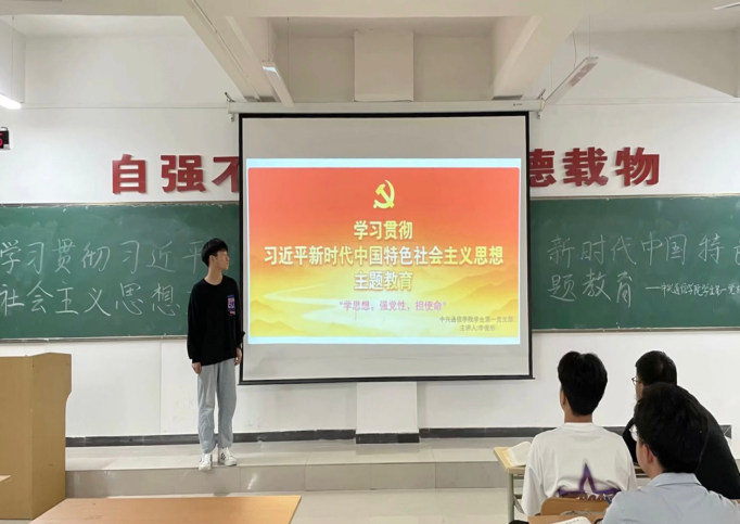 为激励全体党员切实做到学思想、强党性、重实践、建新功。在学校全面推进主题教育之际,中兴通信学院学生党支部采取集中学习、集体分享、互相交流相结合的模式,引导支部全体党员传承革命精神、提升党性修养、坚定理想信念,真正将主题教育成效内化于心、外化于行。