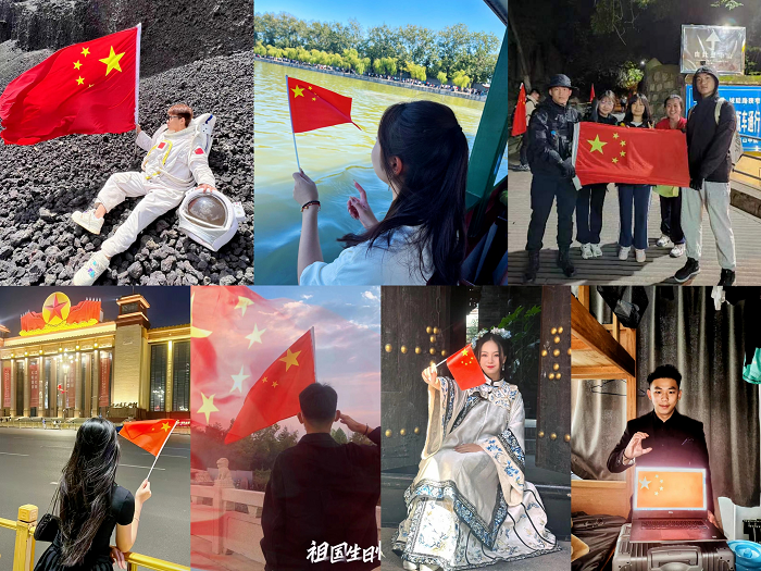 ——开展“我与国旗合个影”主题活动。在照片征集期间,同学们以多种方式与国旗合影、为祖国喝彩。怀着对祖国母亲的敬意,簇拥在一面面鲜红的五星红旗旁,为祖国献上最真挚的祝福。一幅幅照片是我们幸福生活的见证,传递着青年大学生们“我爱你,中国”的心声,也是祖国蒸蒸日上的缩影,更是全院师生对祖国爱得深沉的表达、对红色信仰坚定不移的信任、对新时代建功立业的礼赞和对实现伟大复兴中国梦的憧憬。