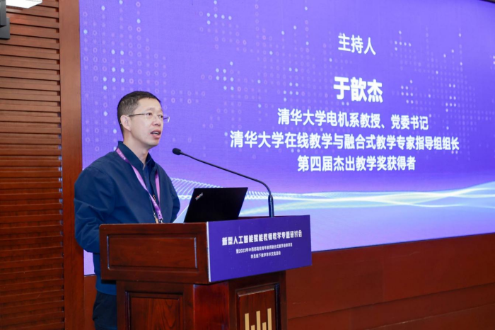 本次新型人工智能研讨会由清华大学、复旦大学、华东师范大学、厦门大学、西南财经大学、西安电子科技大学主办。会上,清华大学机电系于歆杰教授、北京大学教务长办公室主任孙华教授等以“智能教育”为指引,紧紧抓住数字化教学改革的重要机遇,围绕新型人工智能技术在教育教学中的应用、优化和提升、与学堂在线合作,在数字化课程建设等方面展开专题演讲和研讨。