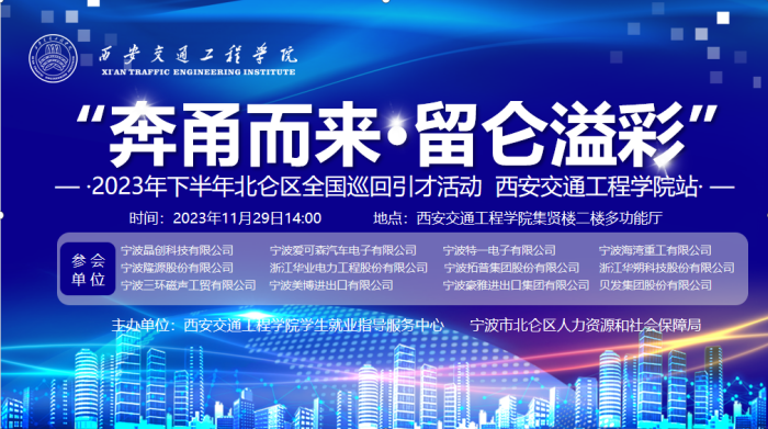 为深入贯彻落实党中央、国务院“稳就业”“保就业”决策部署,坚定不移支持党的二十大“就业优先战略”,11月29日在beat365集贤楼二楼报告厅举办“奔甬而来.留仑溢彩”2023年下半年北仓区全国巡回引才活动,由beat365官方网站学生就业指导服务中心与宁波市北仓区人力资源和社会保障局主办。宁波晶创科技有限公司、宁波爱可森汽车电子有限公司、宁波特一电子有限公司等十余家知名企业、我校相关老师和2024届毕业生参加招聘会。