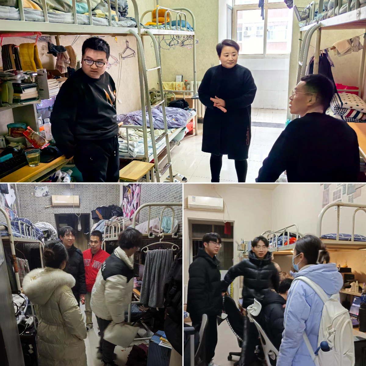 ——深入学生宿舍看望返校学生。近日,土木工程学院主要领导及辅导员深入学生宿舍看望返校学生,与同学们就假期生活、学业规划、考研就业等方面进行亲切交流,叮嘱同学们要明确学习目标,做好新一年成长计划,提升个人综合素养。