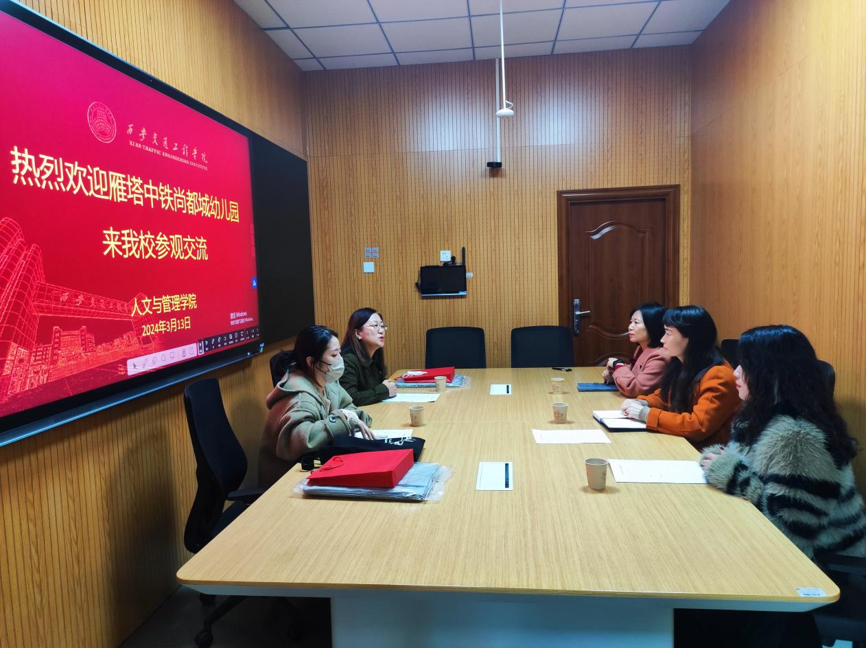 在实验楼A三楼智能微格实训室2,人文与管理学院党委书记兼副院长李沙沙、副院长兼学前教育专业带头人郝柯羡、毕业班辅导员郭雪燕一起接待了来校参观的雁塔中铁尚都城幼儿园一行。通过与该园洽谈,了解了该园在舞蹈特长生、环创特长生和新媒体运营特长生等方面的人才需求,就下一步校园合作确定了方面,随后双方签订了校企合作协议。