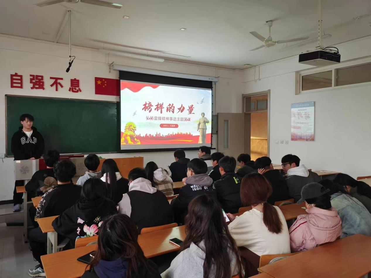 ——开展“雷锋精神”主题团日学习活动。活动中,同学们分享雷锋同志的故事、诵读雷锋同志的名言,并就雷锋精神在新时代的重要意义展开深入讨论。纷纷表示,将不断汲取雷锋精神这一中华民族宝贵的精神财富,坚定理想信念、坚持敬业奉献、锐意创新进取、发扬艰苦奋斗精神,和雷锋同志一样,在自己的岗位上做永不生锈的螺丝钉,使雷锋精神代代相传,焕发勃勃生机!