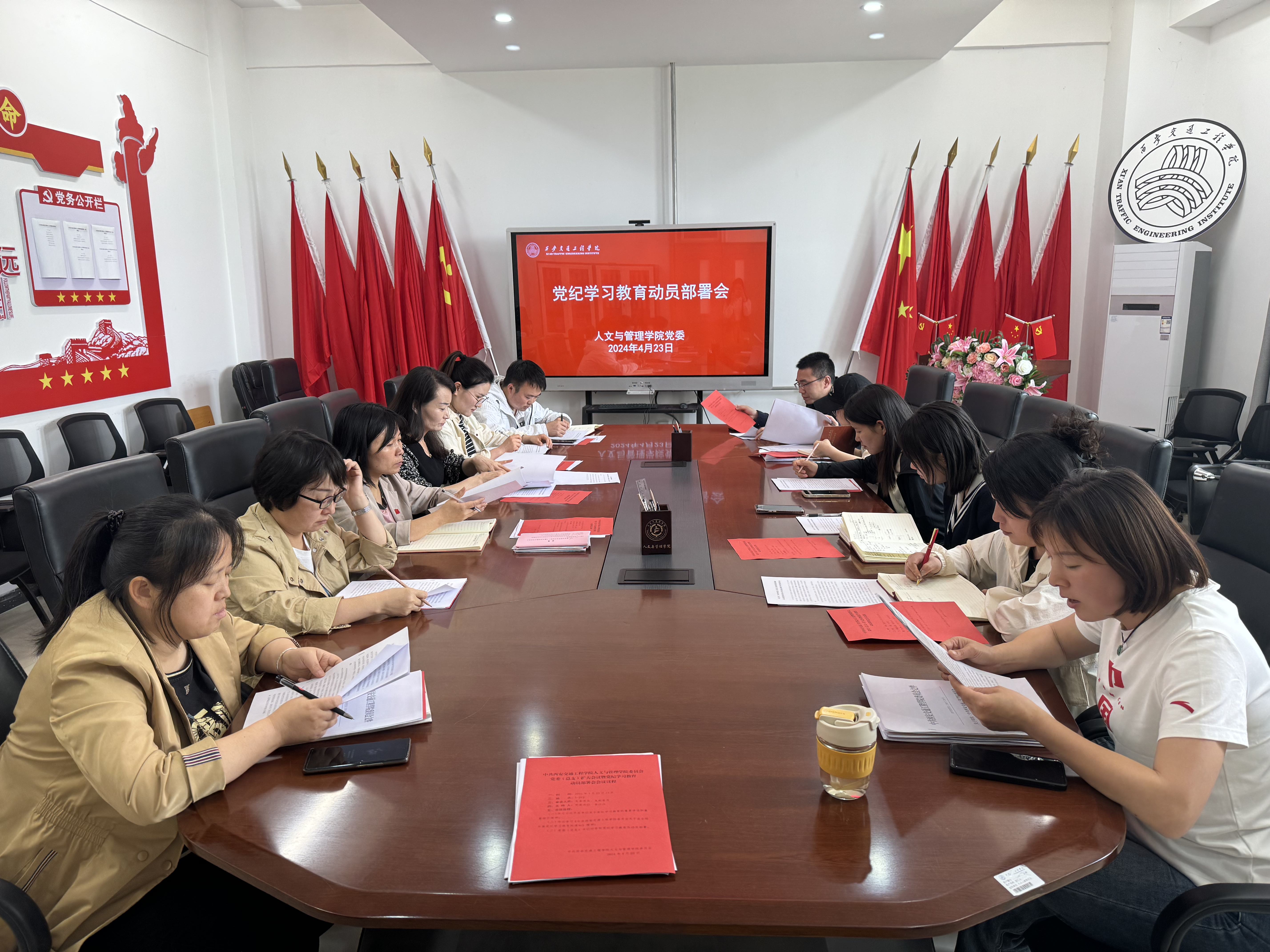 4月23日,人文与管理学院在1-212召开党纪学习教育动员部署会,人文与管理学院党委书记兼副院长李沙沙出席会议并讲话,党委委员和各支部委员参加了会议。