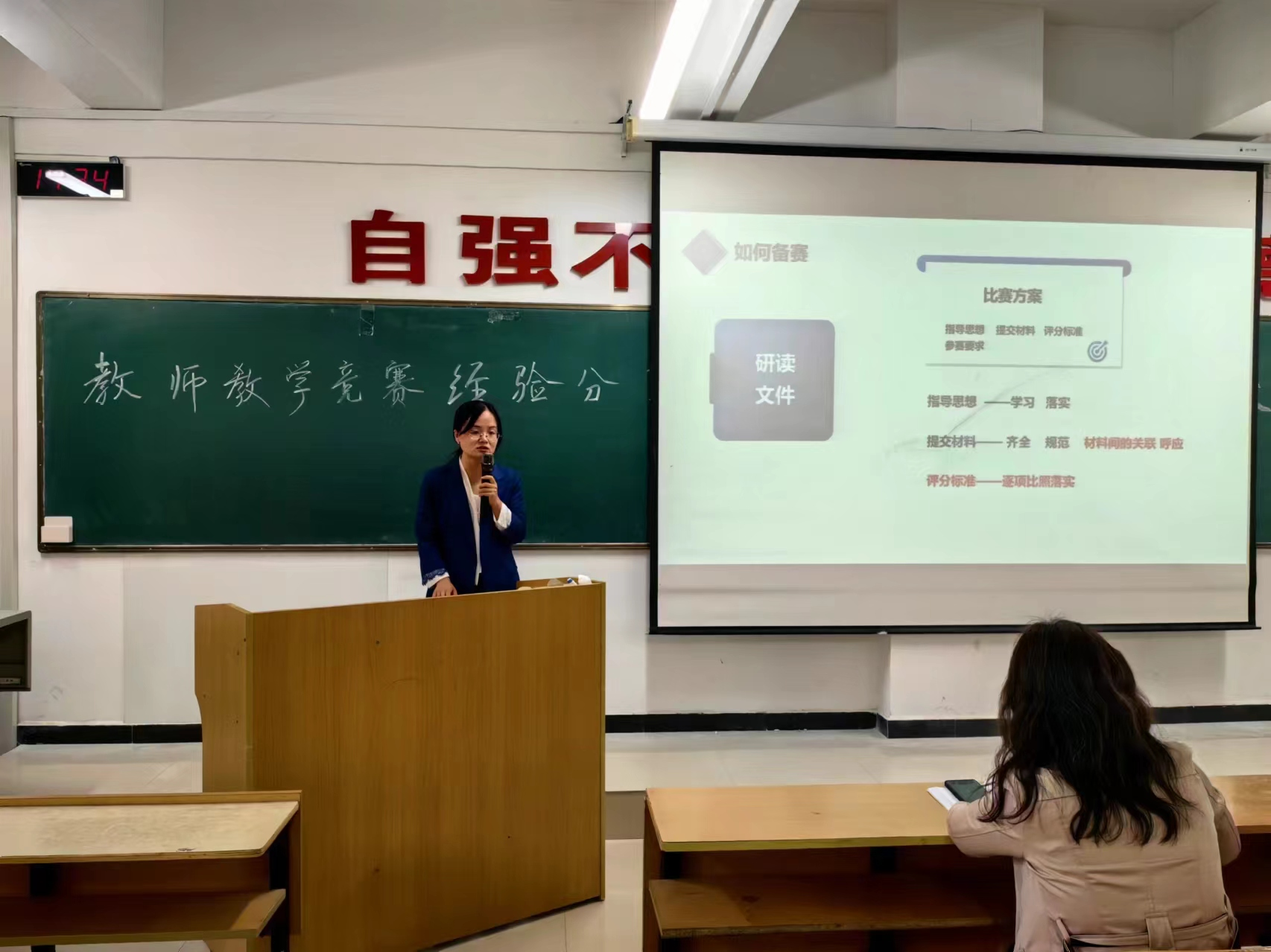 整场讲座内容丰富,脉络清晰,贴近实际,感染力强,博得了与会教师阵阵热烈掌声。为教师后期备课、讲课拓宽信息来源,开阔了备课、讲课的思路与方式方法,提高教师的备课质量,增强教师的讲课水平。讲座结束后我院教师与罗教授进行教学竞赛备赛工作进行了积极的交流,罗老师结合个人比赛经验,特别强调了比赛应注重学术性、跨学科性、前沿性和逻辑性,要避免课程思政误区。
