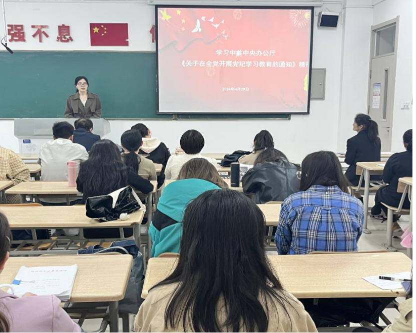 党总支纪检委员郭超妮同志传达中共中央办公厅《关于在全党开展党纪学习教育的通知》精神