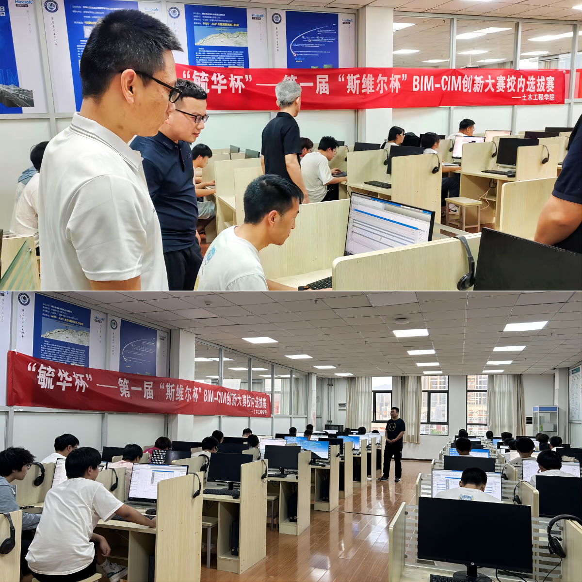 本次大赛通过前期宣传与推广,报名参赛学生共计80余名,在比赛前期,以严心娥教授为组长的指导教师组组织多场培训会。正式比赛场地设置在土木与铁道工程学院工程计算与BIM实验室1与工程计算与BIM实验室2。竞赛过程中,学生沉着冷静、认真作答。该院副院长赵伟深入比赛现场指导,对参赛学生寄予了高度期望,并对指导教师的辛勤指导与学生的刻苦训练给予了充分肯定。