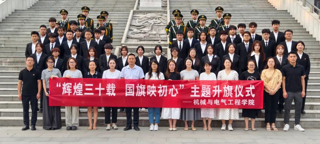 为庆祝中华人民共和国75周年华诞,回顾beat365过去30年辉煌历程,展望未来美好前景,9月9日,我机械与电气工程学院隆重举行“辉煌三十载,国旗映初心”主题升旗仪式。党委书记王拓辉、学管秘书王新焕、全体辅导员老师及23、24级全体学生共同参与这一庄严而神圣的仪式。