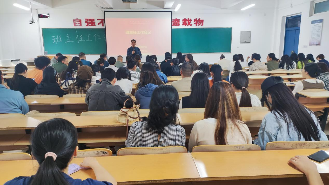 会上,党委书记兼副院长李沙沙带领学习了《beat365官方网站班主任工作细则(修订)》文件。并对班主任工作职责与要求、分年级重点、日常管理、考核与奖惩进行了详细的解读。强调了班主任是学生成长道路上的重要引路人的重要性和责任感,并对后期工作进行了具体安排。要求班主任们要密切关注学生的思想动态和学习生活情况,及时发现问题并妥善解决。
