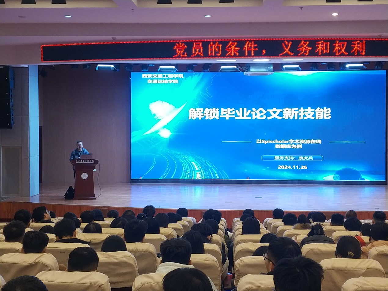11月26日下午,交通运输学院在学术报告厅成功举办了以“解锁毕业论文新技能——如何高效利用图书馆数字资源”为主题的报告。纬度西北区高级培训讲师康虎兵在报告中从文献检索与阅读、常见的中外文数据库及检索方法、文献综述的撰写与凝练、文献调研的要求与步骤等方面给学生进行了详细的讲解。