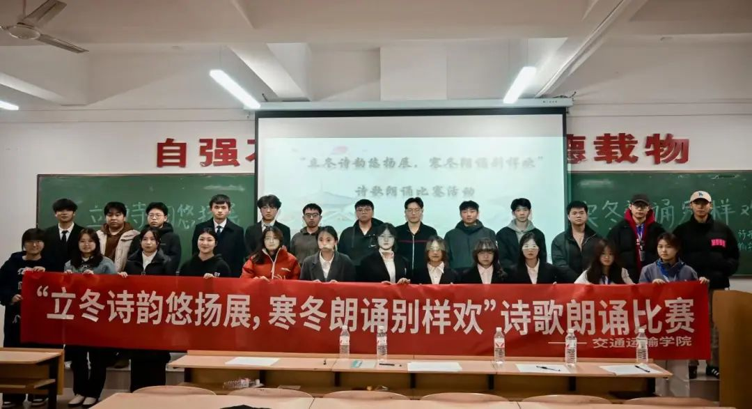本次诗歌朗诵比赛不仅为交通运输学院热爱朗诵的同学提供了一个展示才华的平台,也让在场的观众体会到了诗歌与朗诵的艺术魅力。随着同学们陆陆续续地朗诵,活动也圆满落幕。但这场诗歌的盛宴并未结束,它如同寒冬中一缕温暖的阳光,点亮了每一位参与者的心灵。