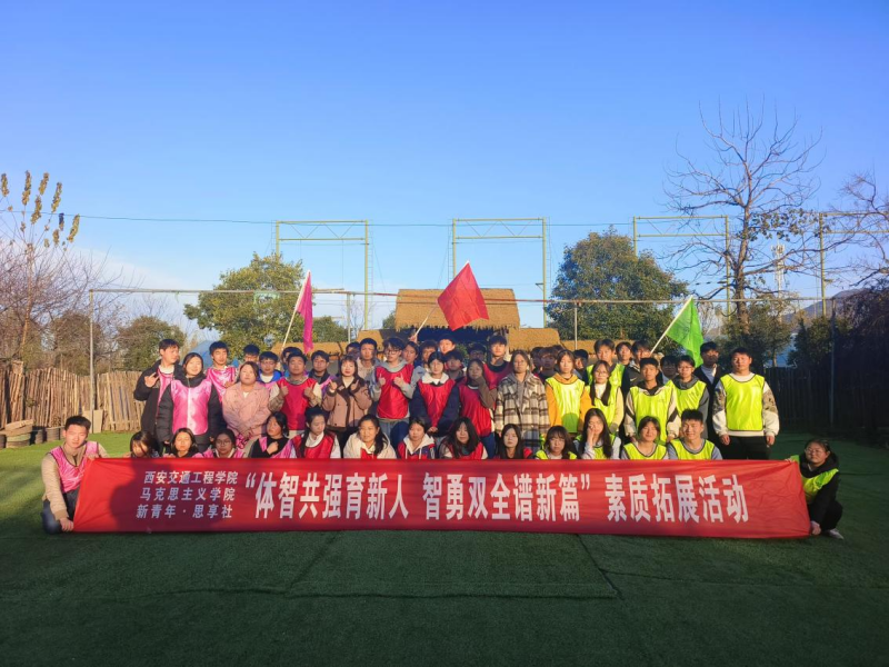 为提高大学生的身体素质,增强心理建设,鼓励健康的生活方式,锤炼拼搏与团队协作精神,促进德智体美劳全面发展。2024年11月30日,马克思主义学院新青年·思享社组织全体社员及学校部分院学生参加“体智共强育新人 智勇双全谱新篇”的素质拓展活动,全体师生共同度过了充实而富有意义的一天,彰显出青年人的蓬勃与朝气。