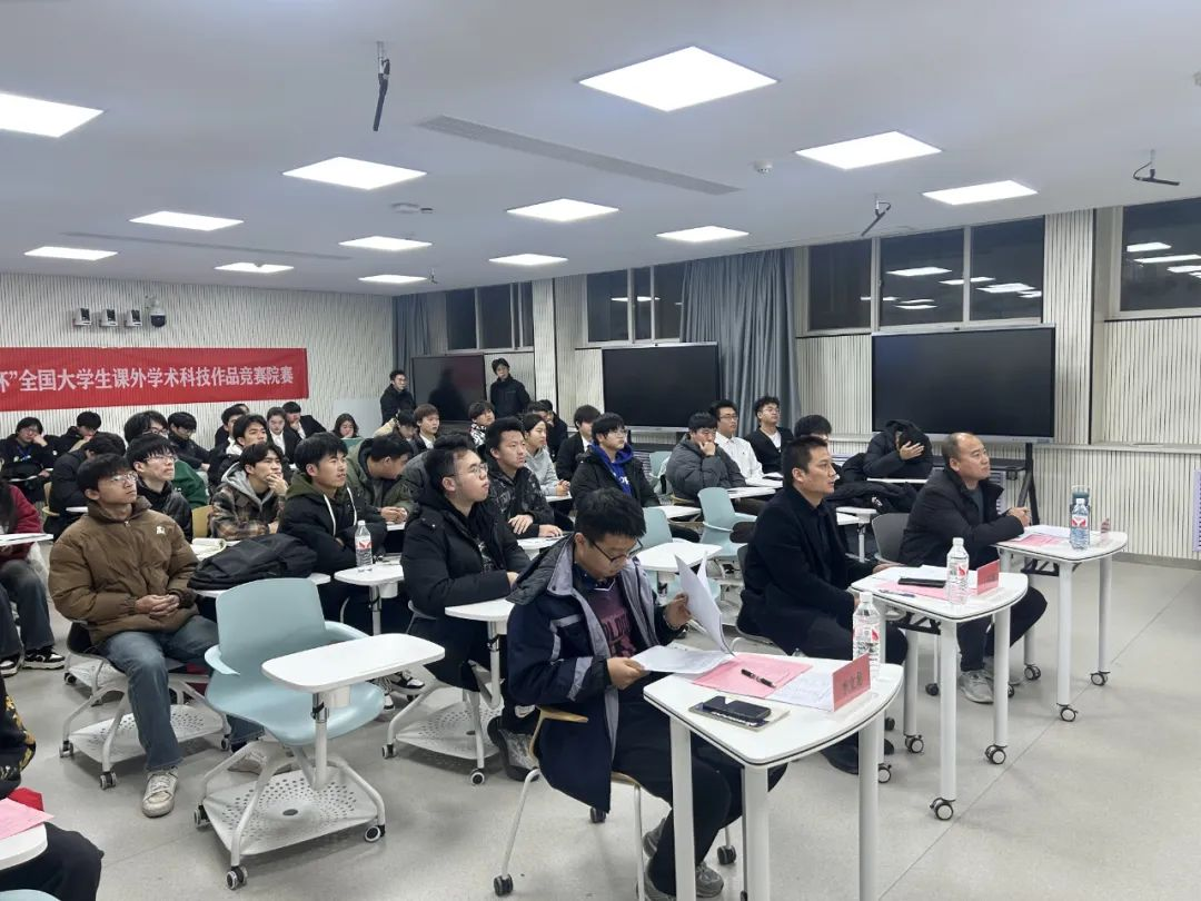 为选拔优秀作品,展现学院在科技创新领域的实力和成果,12月18日,我院“挑战杯”大学生课外学术科技作品竞赛院赛在7-308、309、310教室圆满结束。学院党委书记王拓辉、副院长任小文、团总支书记李阳光,以及各教研室主任和指导教师出席指导。