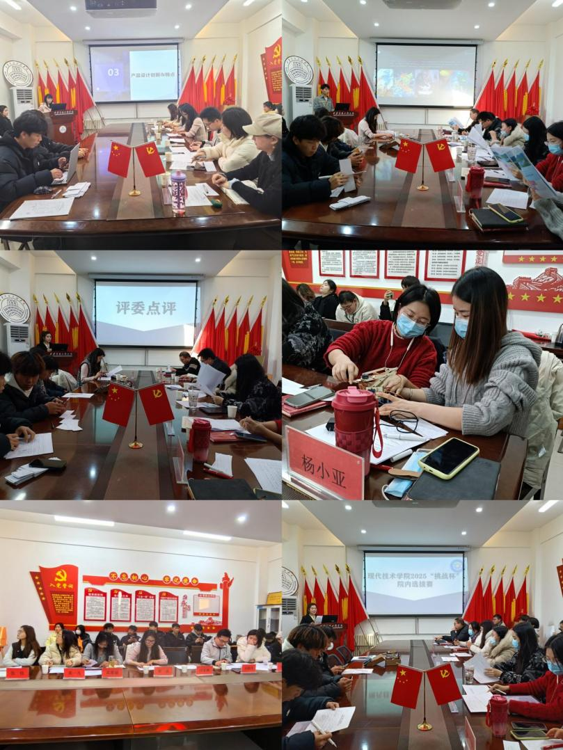 根据校团委《关于举办beat365官方网站 2025 年“挑战杯”大学生课外学术科技作品竞赛的预通知》要求,12月24日、25日,现代技术学院2025年“挑战杯”院内选拔赛顺利举行,旨在培养广大青年学生创新精神和实践能力,推进第二课堂与第一课堂同向同行、深度融合。学院党委书记田宏顺、团总支书记黄晶、任课教师张钰、高雅丽、袁一凡、问晓宇、马悦、张乐妍、任晓霞、闫闻芮、戚盼、杨小亚、李佳伦、刘若梦担任评委。30个参赛团队骨干人员参加选拔赛。