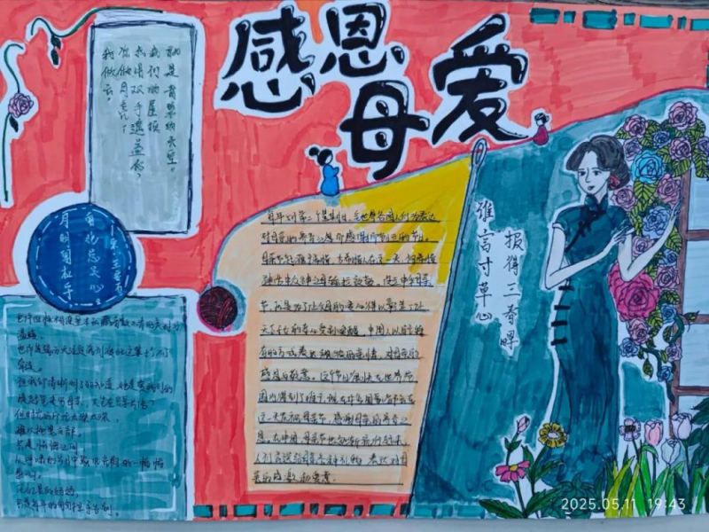 在母亲节来临之际,为深入践行社会主义核心价值观,弘扬中华孝道文化,引导青年学子感悟母爱伟大,5月11日,我院暖伴学涯学长导师团队组织开展“感恩母爱,绘就深情”主题手抄报创作活动。
