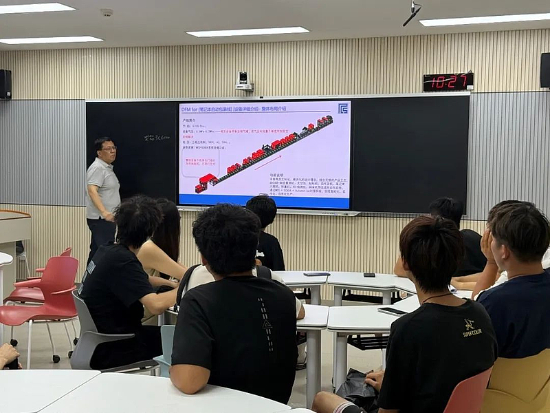讲座围绕工业自动化的发展历程展开,付锐结合其多年行业实践经验,系统讲解了PLC(可编程逻辑控制器)、变频器、伺服系统等关键设备的工作原理、制造流程与应用场景。他通过具体案例和实物展示,深入剖析了这些自动化设备在智能制造、电力系统和机械加工等行业中的实际作用,指出“智能化与高效化”已成为现代工业发展的核心趋势。