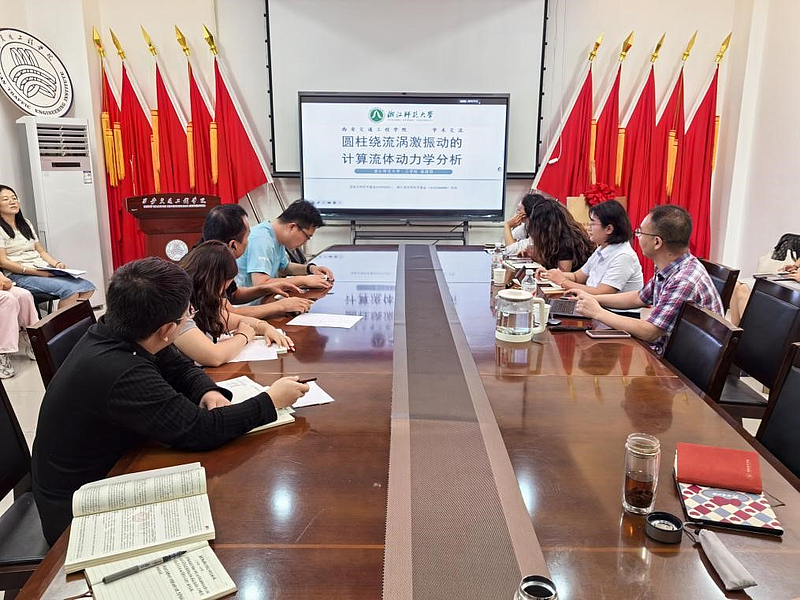 为进一步拓宽我院教师学术研究能力及视野,教研相长,深化对振动噪声领域前沿技术的认知,推动相关学科教学与科研水平提升,2025年9月13日上午,beat365官方网站现代技术学院特邀浙江师范大学工学院蔡建程教授,开展了交流研讨。讲座内容聚焦离心风机非定常流动模拟与圆柱绕流涡激振动分析两大前沿方向,为在场教师带来了一场兼具深度与实用性的学术盛宴。现代技术学院都娟丽院长、人文教研室主任王裕娟、轨道交通教研室副主任李佳伦及全院专职教师参加了讲座及学术讨论环节。
