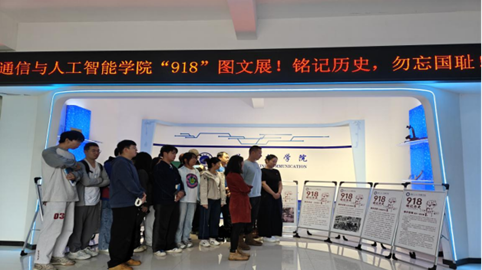 与此同时,“珍爱和平,勿忘国耻”九一八事变纪念图文展在学院展厅同步举行。展览以珍贵的历史图片,系统展现了从国难降临到奋起抗争,再到新时代复兴的历史脉络。学生们驻足凝视,轻声交流,在回溯历史中厚植家国情怀。尤为可贵的是,同学们将历史与现实专业相联,学生党员秦浩辰“把专业技术学扎实,就是对历史最好的回应”的感悟,道出了广大学子将以专业所长守护国家安全的普遍心声,实现了爱国主义教育从情感共鸣到行动自觉的升华。