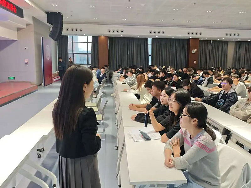 随后,学校就业指导中心王丹主任通过互动交流形式,深入解读行业动态与就业形势。她指出,当前就业市场竞争已延伸至985、211高校本科及研究生群体,即便是有考研、考公、考编计划或受家庭就业预期影响的学生,也需提前构建行业认知体系。在介绍企业情况时,王丹主任明确,作为市属国企的集团公司旗下运营公司为订单班签约主体,业务覆盖有轨电车等四大核心板块;同时详细拆解招聘全流程,包括报名组织、含逻辑思维与心理测评的笔试环节、面试及参照公务员标准执行的体检流程。此外,她重点说明订单班将采用“岗位需求导向”培养模式,实现学生专业技能与岗位要求的精准匹配,企业还将提供五险一金、带薪培训、节日福利等完善保障体系。“希望同学们结合自身实际做好研判,抓住眼前的优质就业契机。”王丹主任在分享尾声向学生发出倡议。