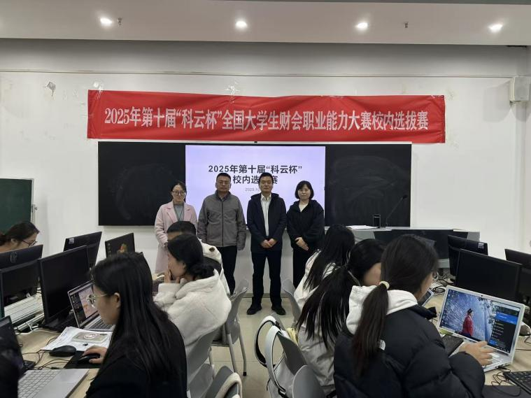 为匹配企业业财税融合下的智能财务工作岗位要求。近日,人文与管理学院举办了第十届“科云杯”全国大学生财会职业能力大赛校内选拔赛。48名学生组成12支队伍参加本次选拔,经过多轮专业考核最终两支队伍晋级省赛。