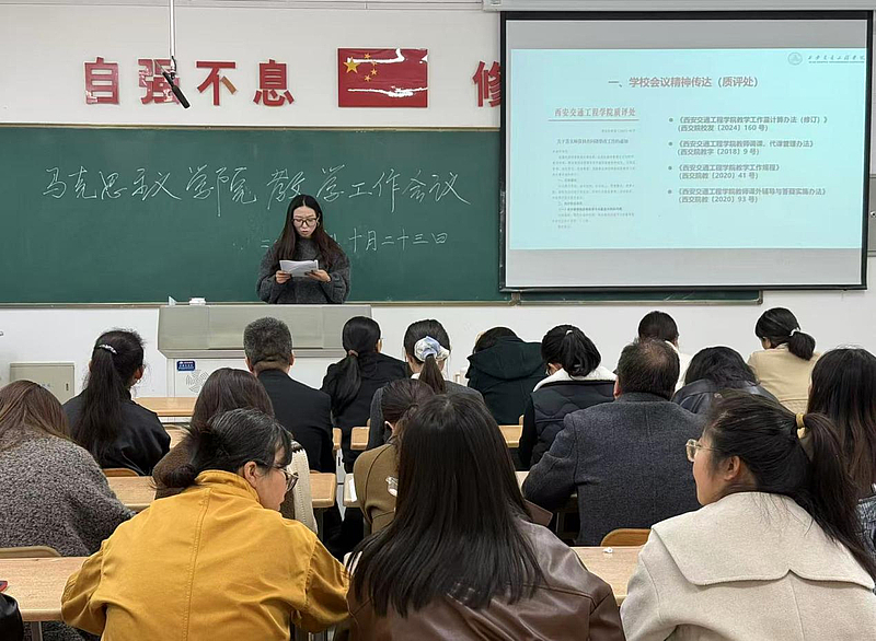 会议第一项,李艳详细传达了学校教学质量监控与评估处近期召开的专题会议精神,重点围绕《关于落实师资核查问题整改工作的通知》(西交院质函〔2025〕42 号)文件要求进行了详细解读与部署。她指出,核查反馈既肯定了学院在师资队伍建设方面取得的阶段性成效,也中肯地指出了在教学管理与运行环节的规范性、教师评学工作的实效性、新进教师岗前培训的系统性与深度等方面,仍存在着力改进与优化的空间。她强调,全体教师必须从思想上高度重视此次整改工作,深刻认识到规范教学管理、夯实各级责任对于提升学院整体办学水平与人才培养质量的基础性、关键性作用。她要求,各教研室及全体教师务必坚持问题导向,对照反馈意见逐条梳理,制定切实可行的整改方案,明确时间表与责任人,确保各项整改措施落到实处、见到实效,形成长效机制,以彻底的整改成效推动学院各项教学工作。