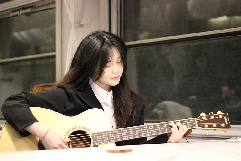 音乐汇在悠扬的旋律中拉开帷幕,声乐队的同学们倾情演绎了多首风格各异的歌曲,为现场观众带来了一场视听盛宴。演出曲目既有经典传唱的深情之作,也不乏清新动人的流行金曲。从《这一生关于你的风景》的细腻温柔,到《意外》的执着坚定;从《不为谁而作的歌》的宏大自省,到《大城小爱》的温馨浪漫,每一首歌曲都承载着不同的情感与故事。紧随其后的《前方之前》以简短的篇幅引发对未来的思考,而吉他伴奏的《安河桥》则以质朴的旋律勾起了无尽的回忆。《夏夜最后的烟火》《裹着心的光》等歌曲陆续唱响,或温暖治愈,或坚定有力,深深打动了在场的每一位听众。当《我们的明天》的合唱声响起,台上台下情感交融,充满了对美好未来的共同期许。经典的《成都》带领大家进行了一场美妙的“音乐旅行”,《一个人的旅途》则唱出了成长中的孤独与思考。整场音乐汇在《带我走》的悠扬歌声中缓缓落下帷幕,余音绕梁,令人回味无穷。