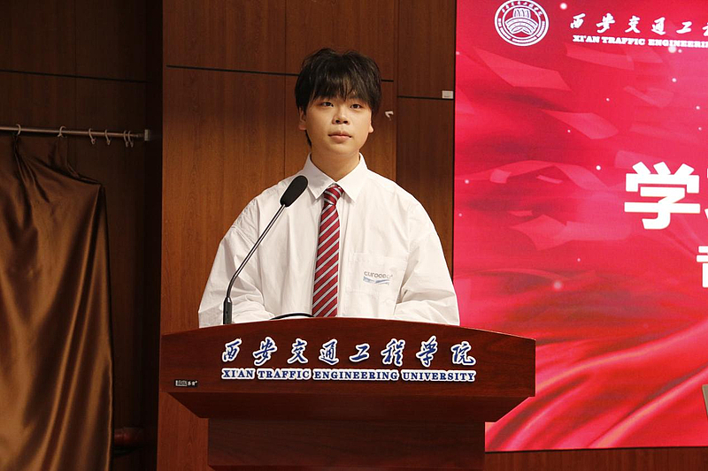学生代表音乐学2302班虞景烨在发言中用“孤独”和“乐观”分享了自己的学习心得。他表示将把这份荣誉转化为继续前进的动力,同时也呼吁同学们在学习道路上相互鼓励、共同进步。
