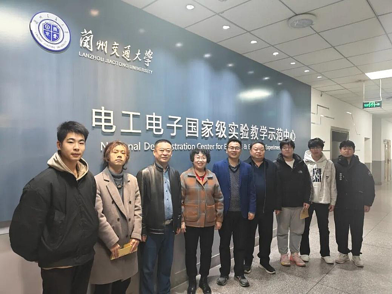 领导老师与学生们在兰州交通大学实验教学示范中心合影