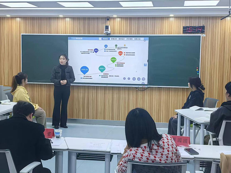 寇扬扬老师参加了混合式教学设计比赛。她系统地展示了如何将线上学习与线下教学有机融合,通过精心的教学设计,重构教学流程,有效拓展了教学时空,提升了教学效率。