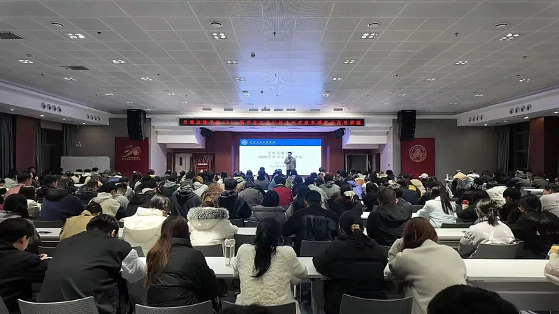 交通运输学院2026届毕业生就业形势报告暨就业指导讲座近日在集贤楼报告厅开讲。本次活动由学院学工组长肖茹峰主持,特邀资深就业指导老师关龙主讲,全体2026届毕业生到场参与,讲座围绕就业市场趋势、行业岗位布局、求职心态调整等内容展开,为学子们梳理了清晰的求职方向。