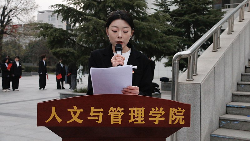学生代表李卷娜登围绕青年责任与使命,结合自身感悟,呼吁全体同学将宪法精神内化于心、外化于行,以青春之我、奋斗之我,在学习生活中践行法治准则,在强国建设的征程中勇担时代重任,用实际行动争做宪法的忠实崇尚者、自觉遵守者和坚定捍卫者。激昂的话语引发在场师生的强烈共鸣,赢得阵阵掌声。