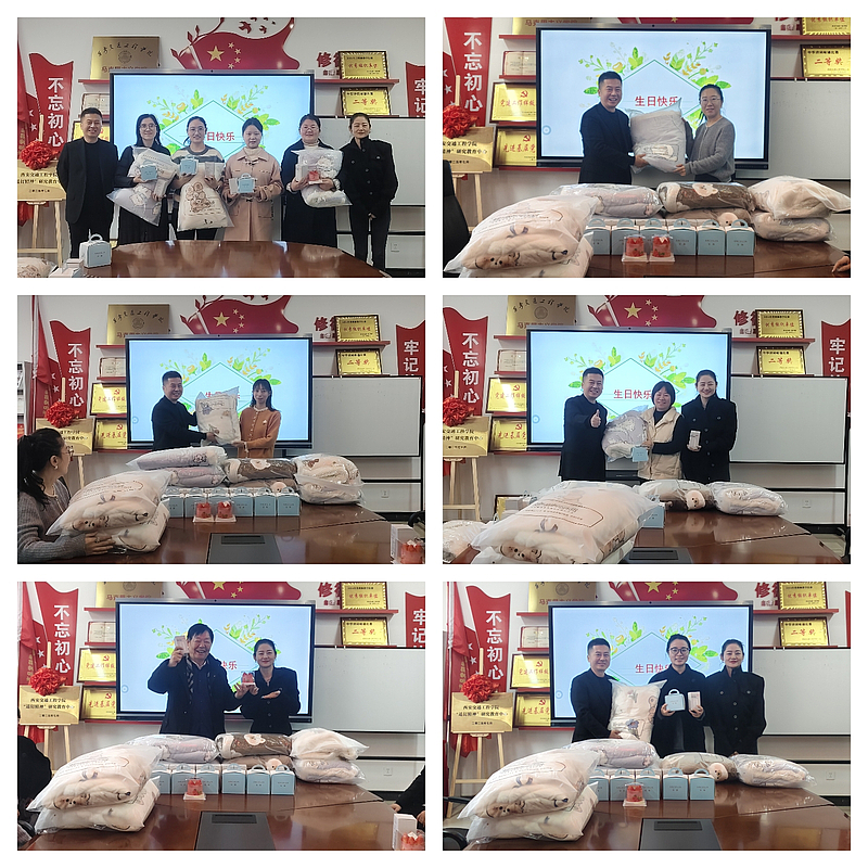 杜国庆副院长表示,真正的快乐和幸福是能够融入一个集体,能够拥有美满的家庭,身边有很多无话不说的朋友,虽然每个人的幸福定义都不一样,但是有同事惦记并且庆祝生日的瞬间,你一定是幸福的!希望大家在温暖的大家庭里面更好地成长进步。最后,两位院长为“寿星”教职工们发放生日礼物并送上了最诚挚的祝福。