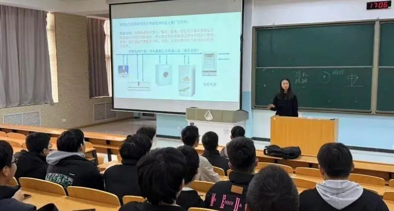 最后,刘星辰着眼能源转型与未来发展,作题为“电网的‘未来形态’——新型电力系统与能源转型”的专题报告。围绕国家“双碳”战略目标,刘老师深入分析了以新能源为主体的新型电力系统在构建过程中面临的机遇与挑战,重点阐述了高比例可再生能源接入背景下电网稳定性、灵活性以及储能技术的关键支撑作用。报告立意高远,引导同学们深入思考新时代电气工程专业人才肩负的使命与责任。