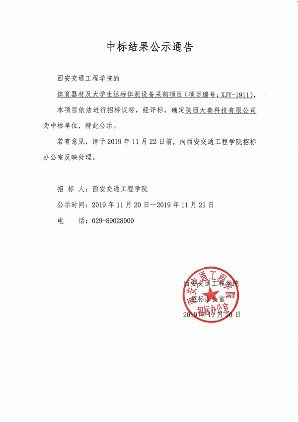 中标结果公示通知