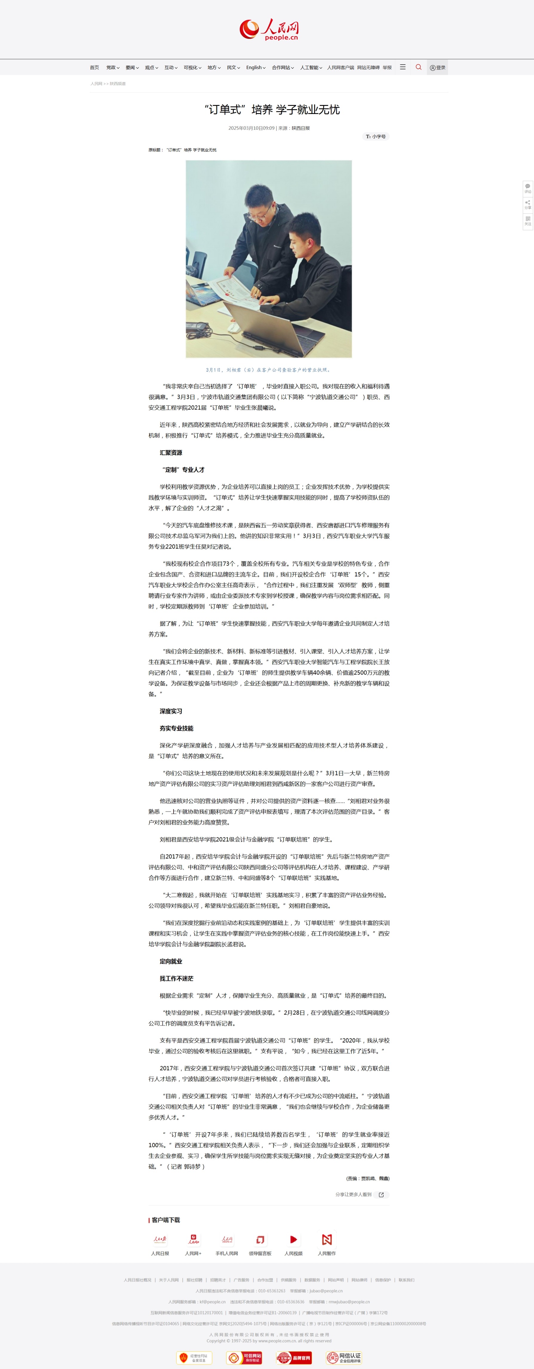 人民网:“订单式”培养 学子就业无忧