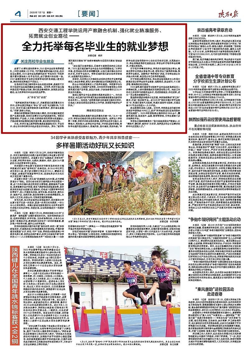 就业数据印证育人成效。近年来,学校就业去向落实率连续多年保持在90%以上,获评“陕西省就业创业指导服务示范性高校”。2025年校园招聘会提供岗位3800余个,覆盖轨道交通、信息技术、金融、教育等领域,为学生搭建了多元选择的平台。