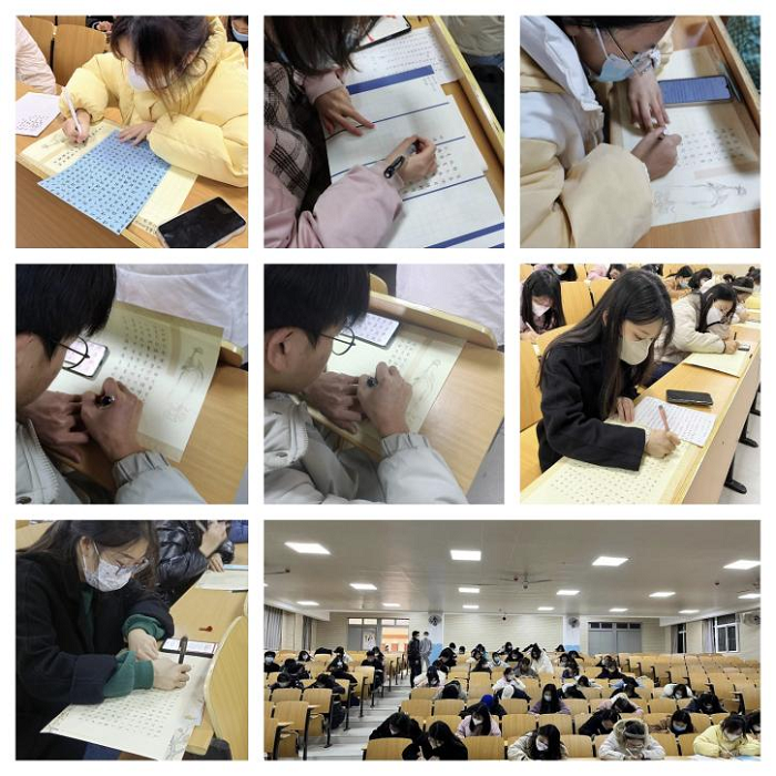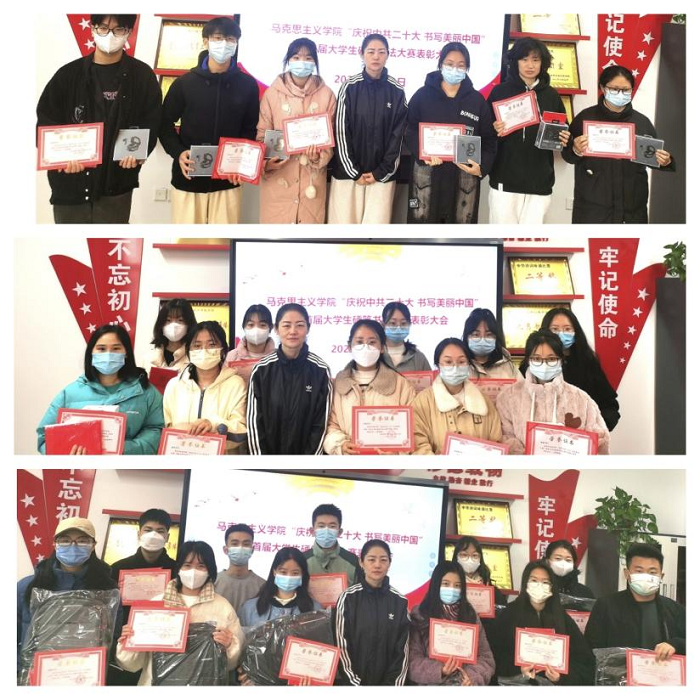 为庆祝中国共产党第二十次全国代表大会胜利召开,营造学习中共二十大精神的良好氛围,弘扬中华优秀传统文化,传承书法风采,书写美丽中国,共创魅力校园,提高学生爱国爱校的良好精神风貌,2022年12月6日,马克思主义学院举办主题为“庆祝中共二十大 书写美丽中国”的大学生硬笔书法大赛。