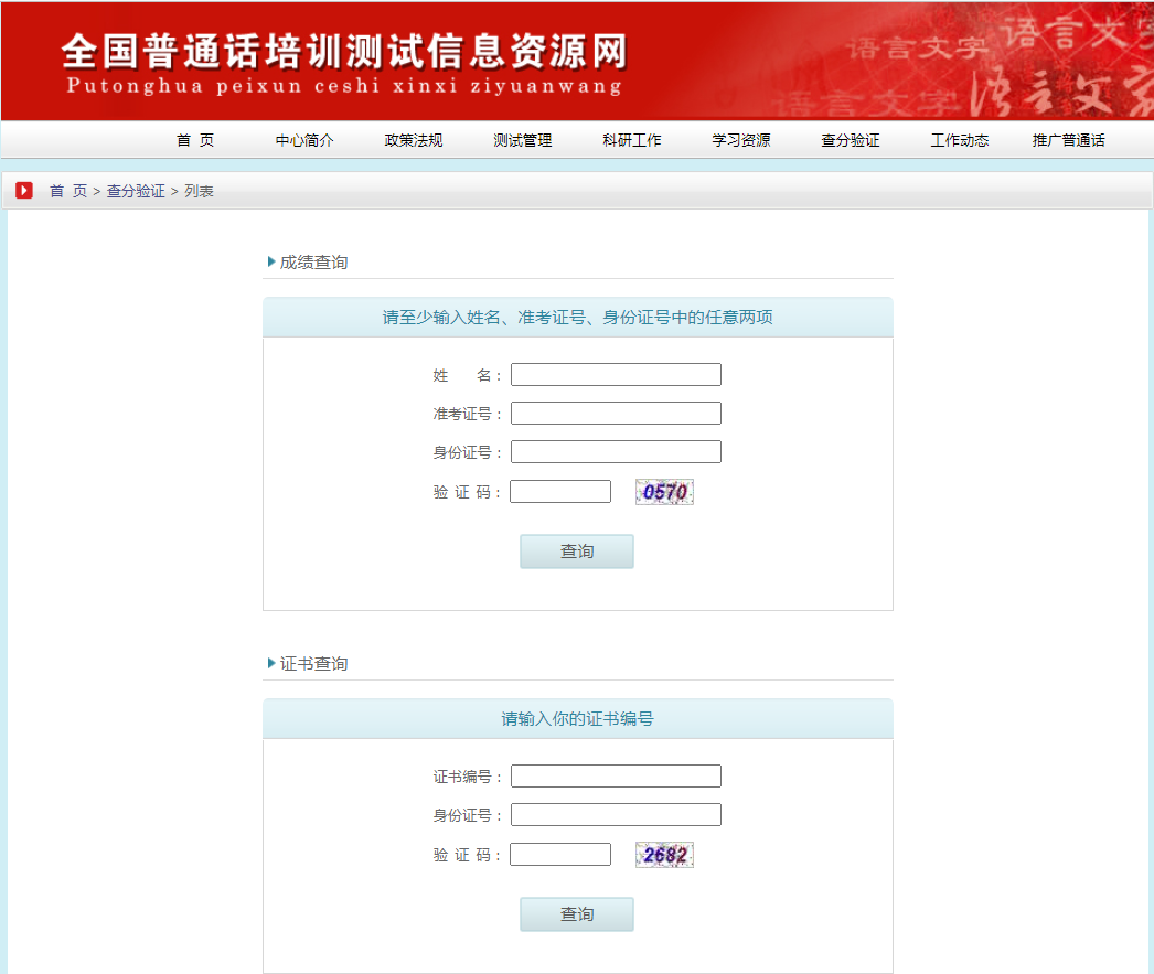 在“成绩查询”中至少输入姓名、准考证号、身份证号中的任意两项,即可查询。