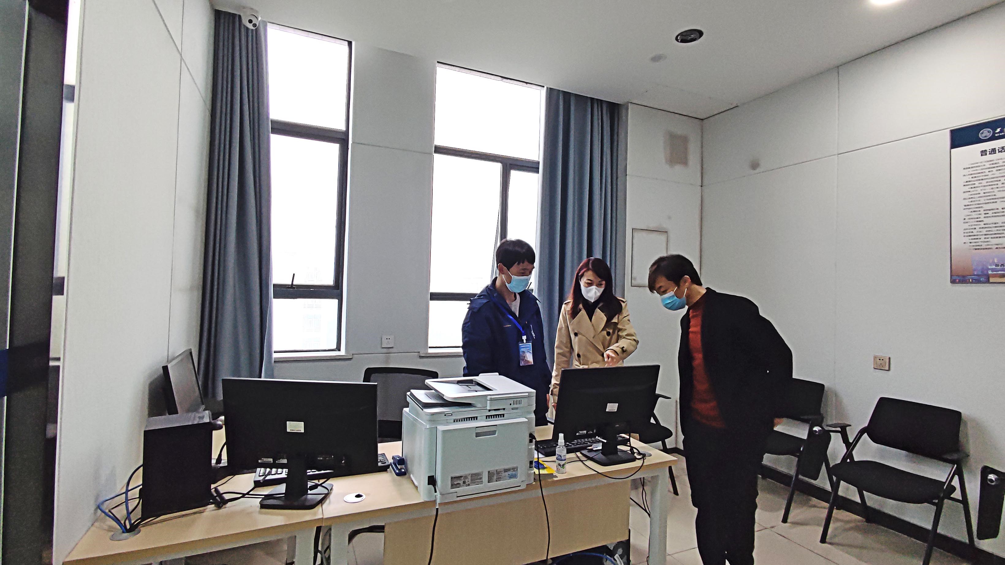 首先,徐校长检查了普通话测试站的疫情防控和测试场所消杀情况,并对学生的候测、信息采集、备测、测试等环节进行检查。