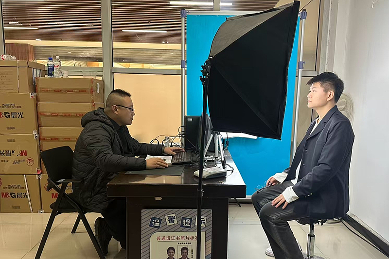 考生在采集室采集头像